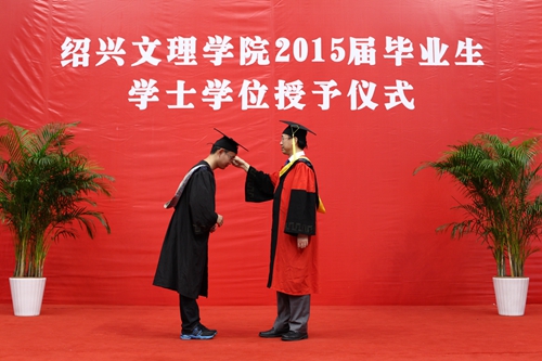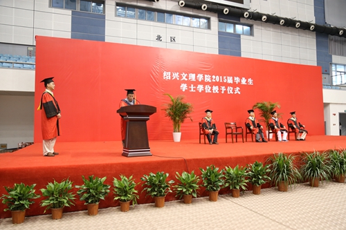 院长齐陈泽教授为毕业生致辞,他向顺利毕业、即将开始崭新人生旅程的2015届毕业生表示热烈的祝贺和美好的祝愿。他回忆了2015届毕业生在校园里美好的青春足迹,对大家学有所成感到无比的欣慰,并语重心长地嘱咐同学们,无论现在和未来怎样,都要永不停歇追求成长的脚步。在奉献社会、服务地方中实现自我价值,以自强不息和艰苦奋斗的精神,成为社会的中坚;要坚持学习,形成终身学习的良好习惯,保持学习的动力和创造的活力,从书本、交往、挫折、社会实践中学习,以勤于思索、勇于创新的精神追求卓越的人生境界;要坚守高尚的品格,要坚守良知、懂得感恩、讲诚信、讲奉献;要脚踏实地,保持谦虚的态度、豁达的心态和宽容的性情,相信自己的未来掌握在自己手中。最后,他深切地说,“虽然今天你们要告别母校了,但你们中的每一位,仍然是绍兴文理人,这是你们人生的印迹。在此,我感谢你们四年来与这个51视频