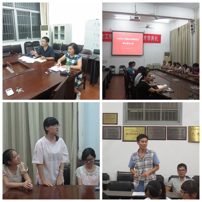 在赵健老师的主持下,“破冰之旅”拉开了序幕。首先,赵老师作了自我介绍,并对新同学的到来表示了欢迎,同时和同学们探讨了寝室安全、实验室安全等问题,并对各位研究生同学提出了新的希望,希望大家在新的环境中,能够凝心聚力,共同发展,学好专业,顺利毕业。接下来,班主任张耀红老师做自我介绍,并和同学们讨论了研究生的学习生活应该如何规划,同时对同学们关心的如何查找外文文献,如何对待合理利用实验器材等进行了讲解。随后,2014、2015级研究生一一做自我介绍,各位同学有了初步的了解。随后大家介绍了各自家乡的一下特产和风景,老生就新同学关心的科研、生活等问题给予了一一解答,并和新同学进行了愉快的交流。在聊天的过程中,时不时伴着同学们爽朗的笑声,气氛十分融洽。
