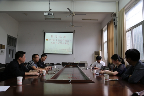5月16日下午,浙江闰土股份有限公司陈志庆副总经理、人力资源和后勤保障部部长俞氽叶二人来51视频洽谈,51视频 齐陈泽院长、魏佩敏书记、徐青副书记、季根忠教授接待了来访。