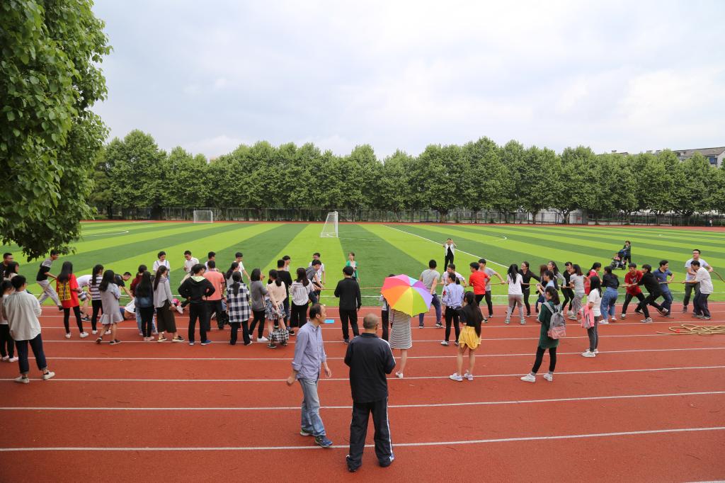 本次运动会以“团结、友爱、拼搏、创新”为主题,每个项目均有教师和学生共同参与,比赛形式多样,趣味丰富,包括盲人前进、趣味拔河、坐地起身、齐心协力、集体跳大绳等。比赛场上,参赛师生热情高涨、齐声呐喊,比赛场面趣妙横生、欢笑声此起彼伏。