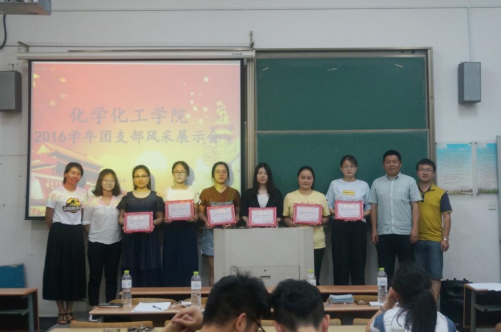 此次展示会最终根据评委打分和观众投票选举产生一等奖为化学师范141团支部,二等奖为药学142、研究生1501、化学类163团支部,三等奖为药学141、应化151团支部和“最团结支部”化学类163团支部,“最创新支部”化学师范141团支部。