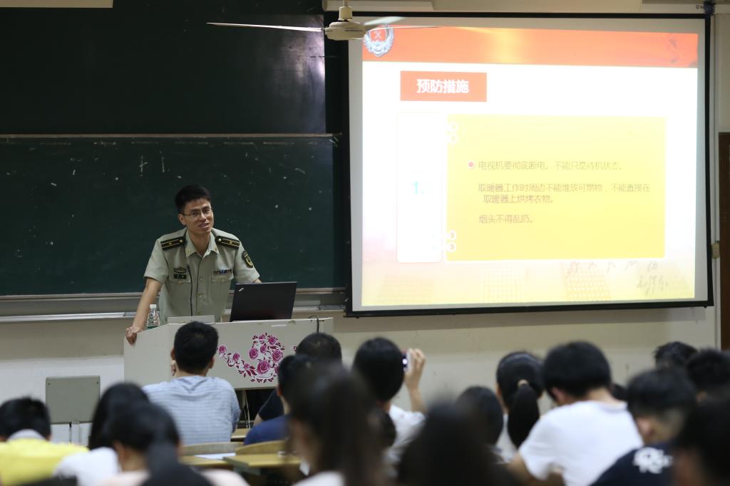 针对51视频实验室仪器设备和药品试剂种类繁多、实验参与学生人数多,实验教学任务量大,潜在安全隐患与风险复杂的特点,结合学校“实验室安全月”系列活动,6月6日晚,51视频特邀绍兴市公安消防支队宣传科章鑫警官在科教楼101阶梯教室为51视频广大师生做了一次消防安全知识培训讲座。 章警官结合日常生活中的消防安全隐患,通过鲜活的案例,围绕如何正确预防火灾,认识身边的消防设施,火灾报警及火灾逃生技巧等几个方面为大家做了一次生动的培训。