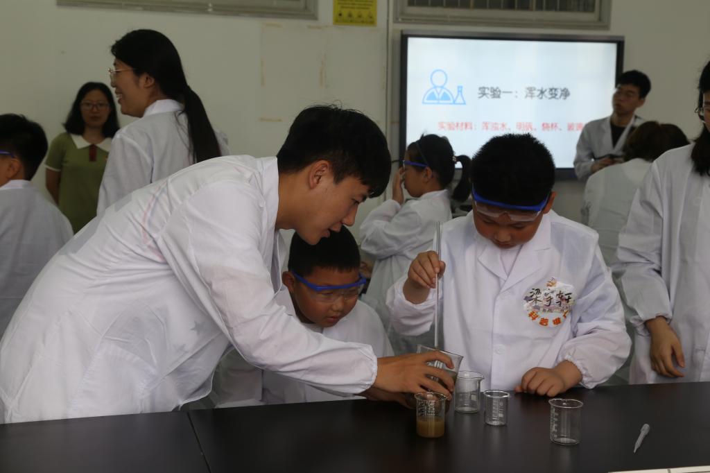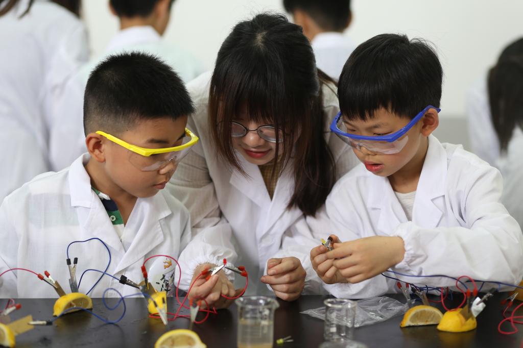党委委员冯高峰博士的趣味指导下,孩子们在化学创新实验室开展了污水净化、水果电池两个趣味实验。生活中看似神奇的净水,通过亲手“调配”“混搭”,生动地展现在孩子们眼前。飘着清香的柠檬,把孩子们馋得直流口水,但当这些柠檬里插入铜片、锌片,连接导线和LED灯,又会发生怎样的变化?一个个趣味实验,深深地吸引着好奇的孩子们,他们时而专注,时而气馁,时而惊叹,时而欢呼。神奇而有趣的实验,在51视频
