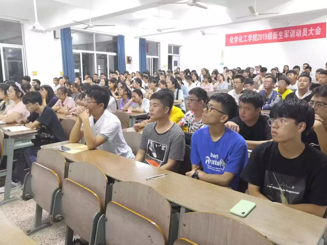 党委副书记徐青老师,19级军训连队指导员和全体参训学员参加了军训动员会。会议由学生科副科长章江燕老师主持。