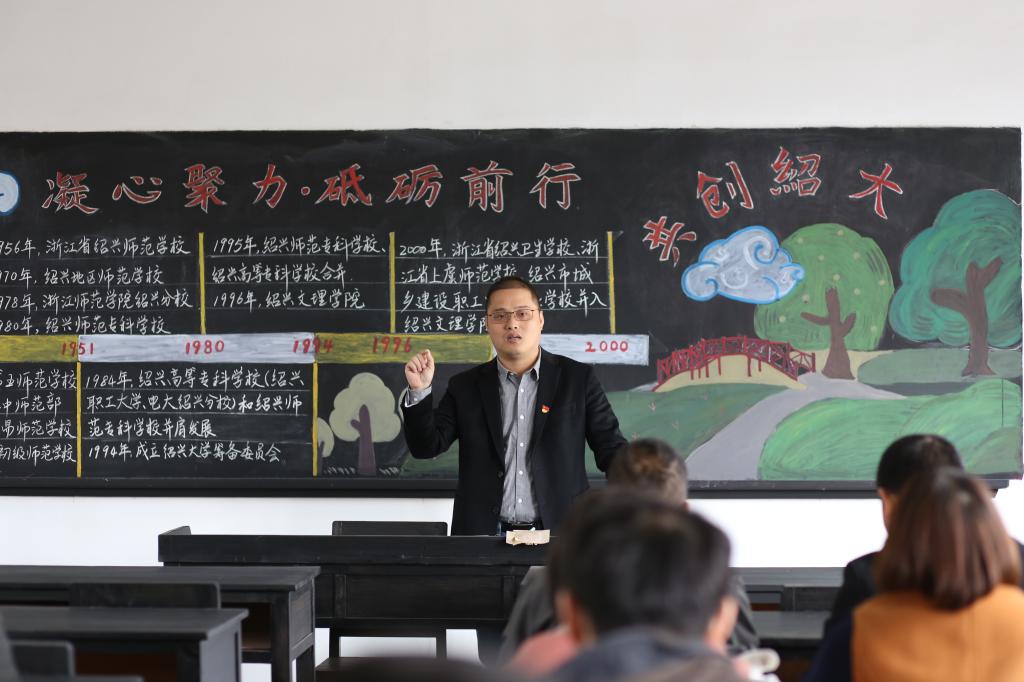 发展蓝图。习总书记曾讲过,一切向前走,都不能忘记走过的路;走得再远,走到再光辉的未来,也不能忘记走过的过去,不能忘记为什么出发。在学校更名设置绍大关键时刻,全体教师党员重温学校筚路蓝缕、传薪兴学的历史和责任,深度挖掘校园文化和办学精神,努力跑好创建绍兴大学这场承前启后、继往开来的“接力赛”。