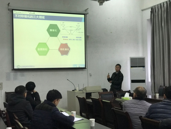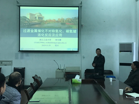 钟教授首先简单介绍了自己,并以深入浅出的方式讲述了此次报告会的主题,引起了大家的学习兴趣以及探求新知的欲望。钟教授首先介绍的多官能化的手性膦二茂铁类化合物既可以作为有机小分子催化剂,促进不对称取代和【3+2】环加成反应,也可以作为高效的手性配体与贵金属协同催化羰基化合物的不对称还原反应,产物ee值可达99%,可用于手性药物及中间体的合成。其次,钟教授介绍了廉价金属钴盐催化的C(sp2)-H键活化反应在药物合成中的应用。最后,钟教授向学生介绍了浙江工业大学概况以及药51视频