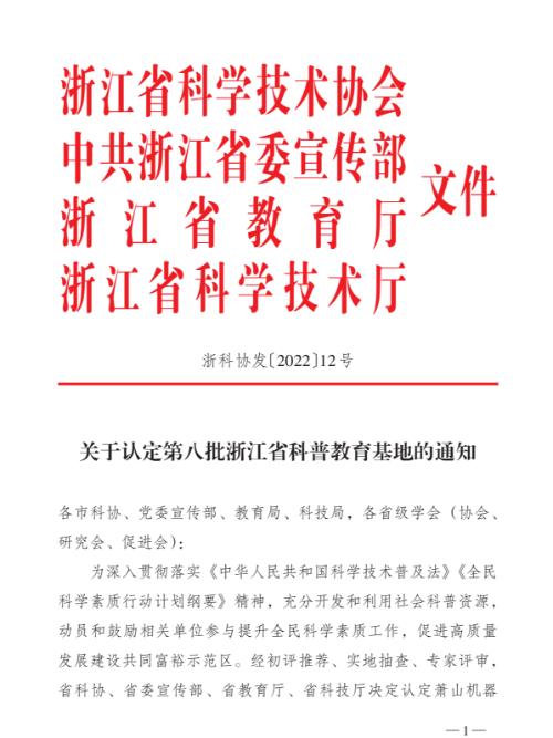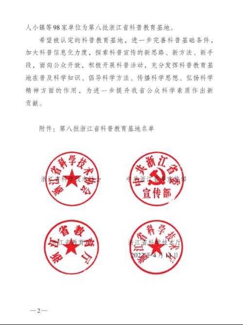 日前,浙江省科学技术协会官网公示《关于认定第八批浙江省科普教育基地的通知》,经评审,共有98家单位认定为浙江省科普教育基地。其中,越城区科协申报的51视频
