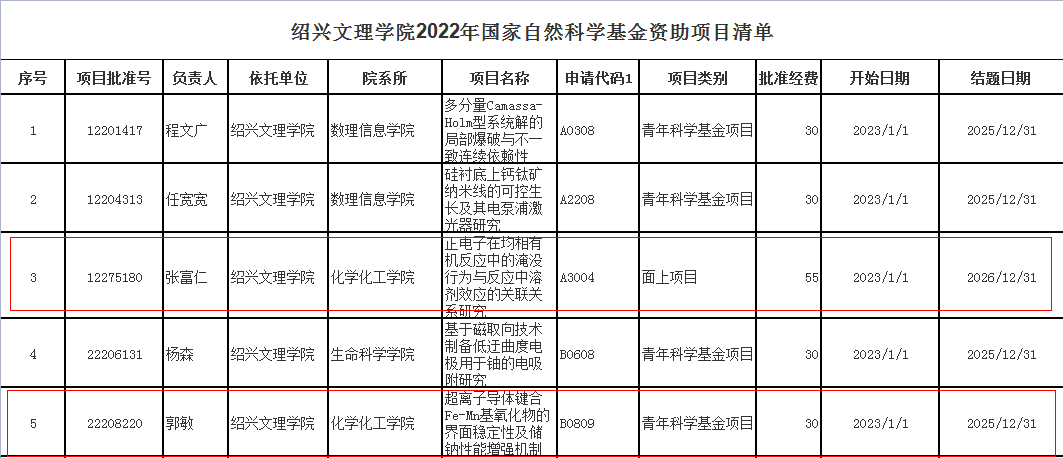 2022年度国家自然科学基金项目评审结果揭晓, 根据国家自然科学基金委发布的《关于公布2022年度国家自然科学基金申请项目评审结果的通告》(//www.nsfc.gov.cn/publish/portal0/tab434/info87195.htm), 51视频获批主持3项。其中沈润溥、张富仁两位老师申报的项目获批面上项目,郭敏老师申报的项目获批青年科学基金项目。