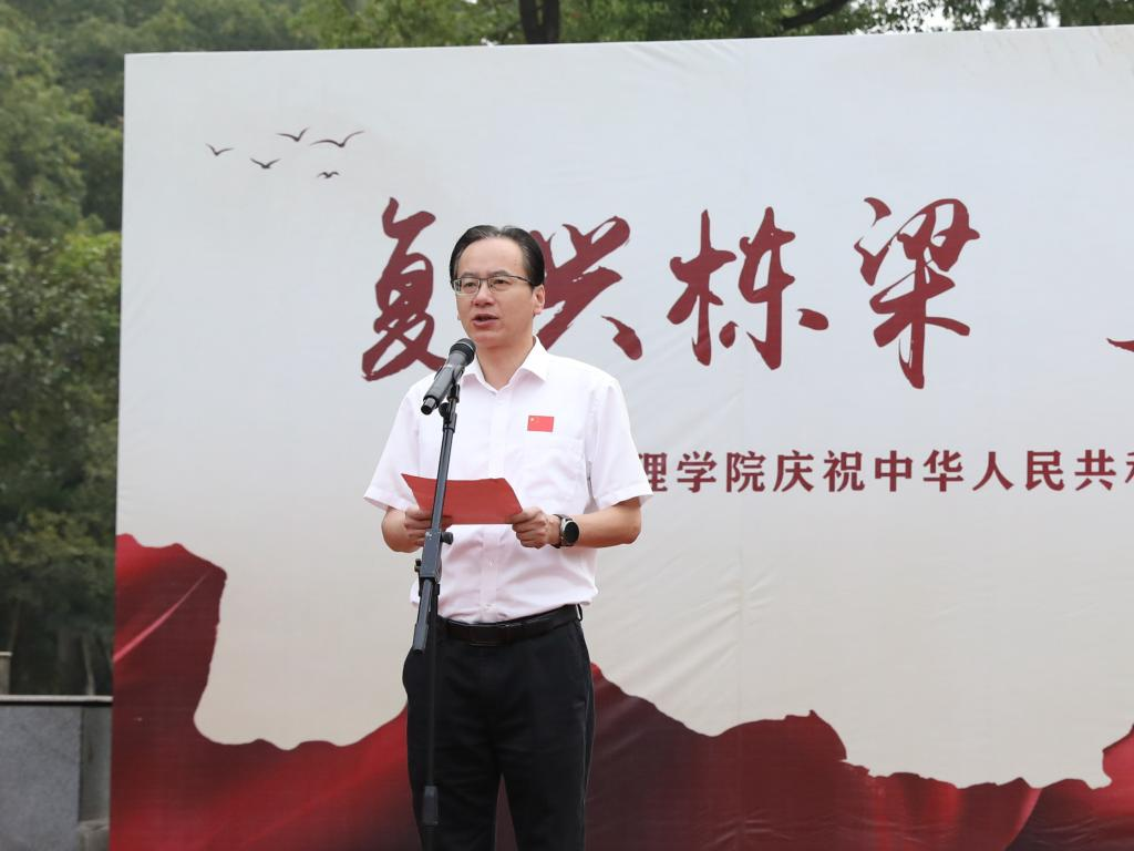 全体研究生党员现场聆听了学校党委张宏副书记的讲话。张宏指出,在新中国即将迎来生日之际,在举国上下喜迎党的二十大即将胜利召开之际,举行升旗仪式,向伟大祖国深情告白,是全体文理人奋进新时代、担当新作为,投身实现中华民族伟大复兴中国梦的行动宣言。他寄语全体文理青年做新时代爱党爱国的新青年,努力成为可堪大用、能担重任的栋梁之才;做新时代向上向善的新青年,不断提高自身综合素养,追求美好崇高的精神境界;做新时代追梦圆梦的新青年,将自身发展融入学校发展、社会发展。