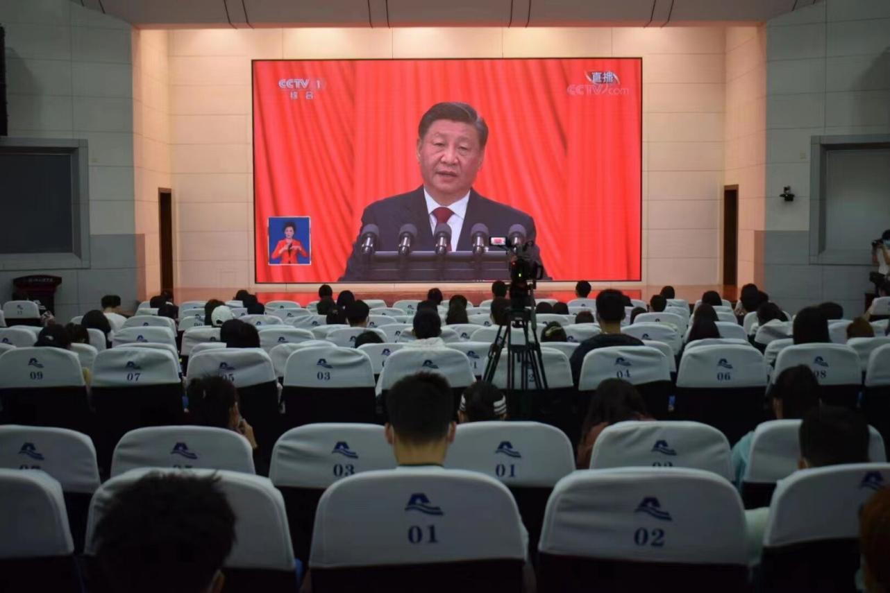 党政领导徐青、曾敏峰、陶菲菲、董华平、王颖,师生党员代表,少数民族学生代表,党团校学员代表、学生代表等集中收看大会开幕会实况,其他师生也采取多种形式收听收看大会开幕会。