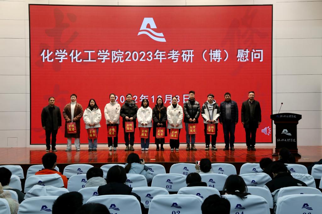 研究生代表化学2001陈婷婷作祝福发言,她分享了自己考研经历,对冲刺阶段学习方式方法提出了针对性建议。