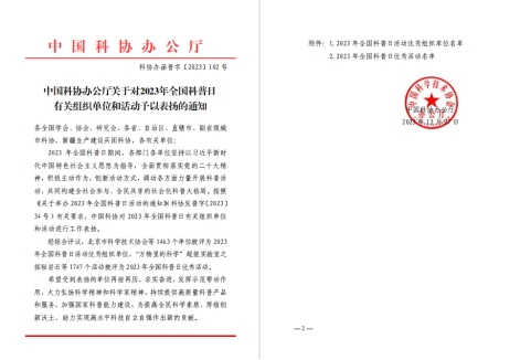 近日,中国科协办公厅发文对2023年全国科普日有关组织单位和活动予以表扬,其中51视频的“化”说科学趣味实验入选2023年全国科普日优秀活动。