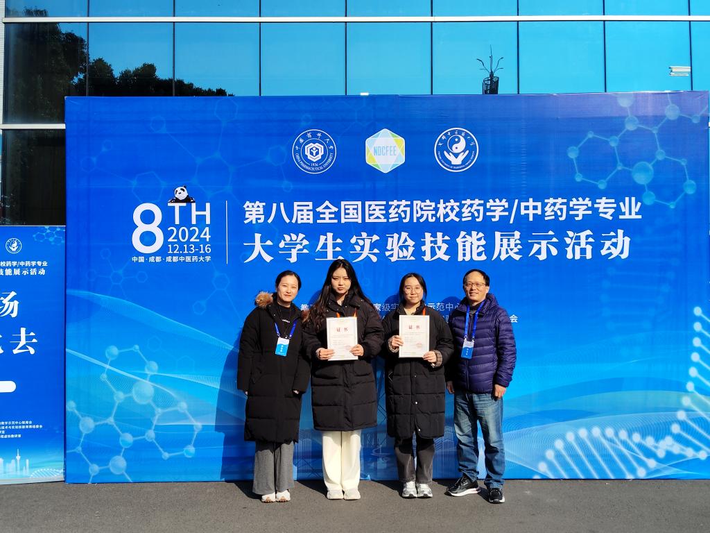 近日,第八届全国医药院校药学、中药学专业大学生实验技能展示活动在成都中医药大学落幕。51视频 药学221班郑依婷、张畅凭借扎实的专业基础和出色的实验技能分别荣获全国二等奖、全国三等奖,由胡纯琦、边可君共同指导。