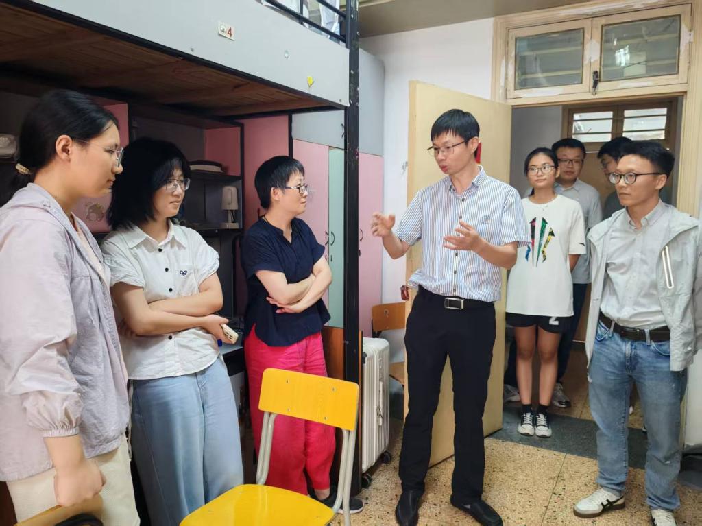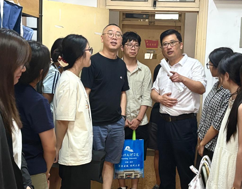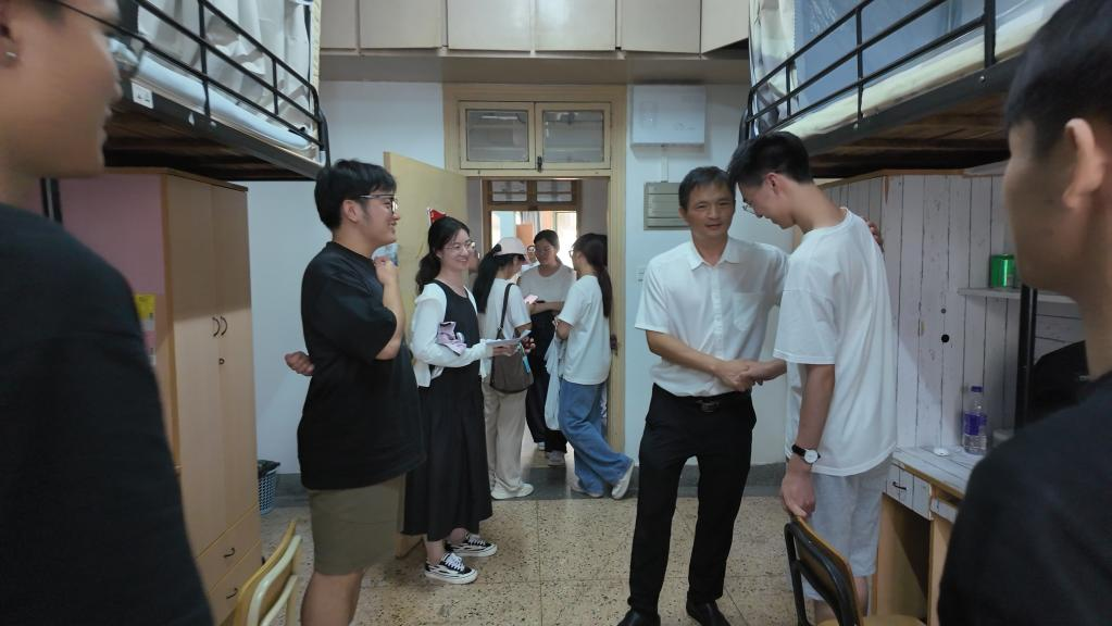 院长钟文武、党委书记潘华泉、副院长董华平、副院长刘雪松、党委副书记章江燕、全体辅导员和新生班主任共同前往树人书院,深入新生寝室开展慰问。在宿舍里,领导们与新生亲切交谈,细致了解他们对校园生活的适应情况、大学规划的筹备进度,耐心解答学业、生活等方面的疑问。同时,领导们也对新生寄予殷切期望:希望大家在大学时光里,不仅能深耕专业、汲取知识养分,更能锤炼坚韧意志、提升综合素养,始终秉持 “修德求真,追求卓越” 的信念,不负时代机遇、不负青春韶华,在新征程中绽放属于自己的璀璨光芒。