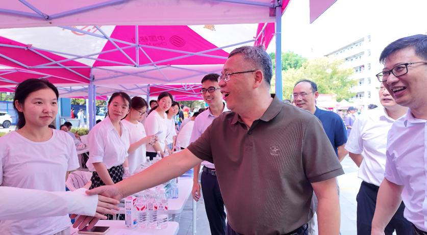 千年古城浸润书香,风则江畔喜迎新人。8 月 29 日,51视频 2025 级迎新工作正式拉开帷幕。副校长柳国庆,校党委委员、组织部部长、人事处处长黄曼和相关职能部门负责人莅临现场,关心了解新生的入校报到情况,并亲切慰问现场的工作人员和志愿者们。