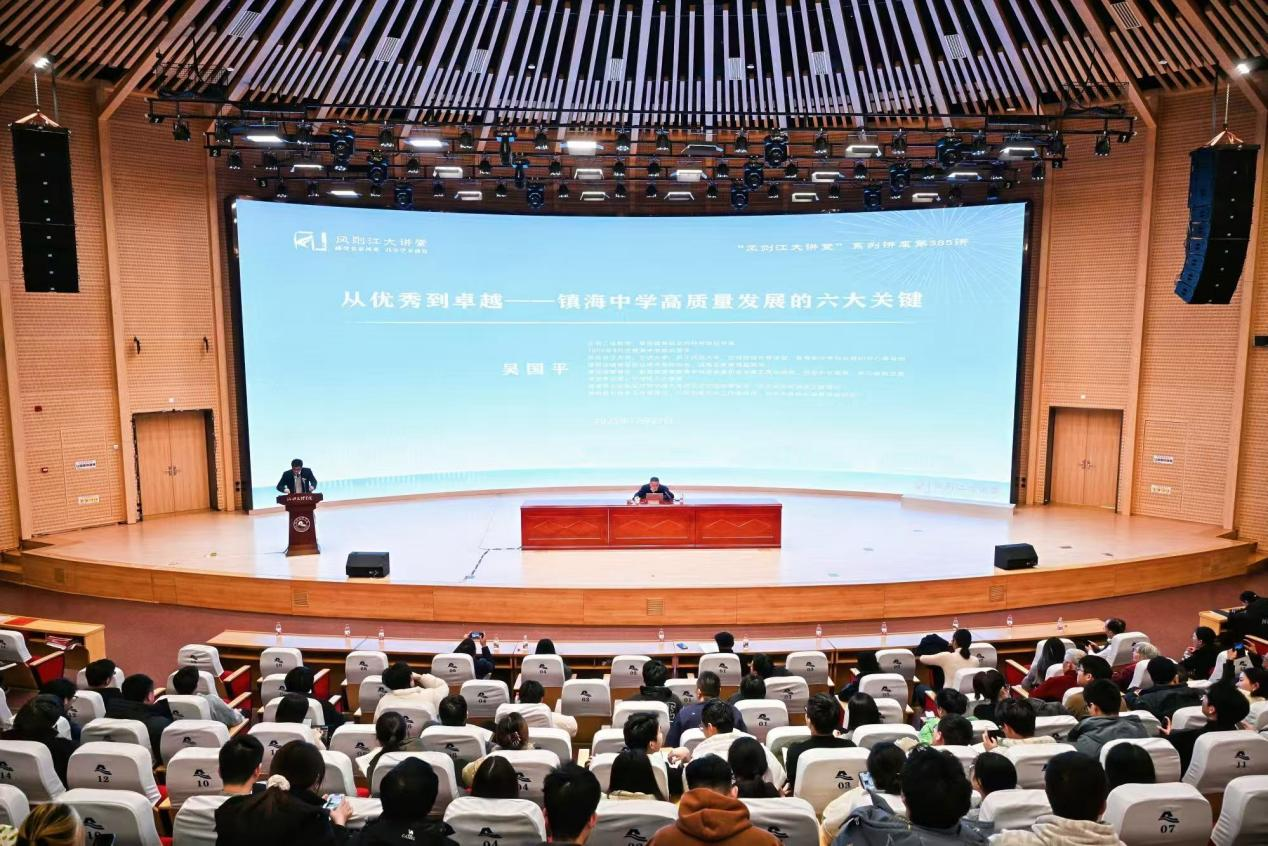 吴国平校长以“从优秀到卓越”为题,结合镇海中学的办学实践,探讨了新时代基础教育高质量发展路径。讲座伊始,吴校长首先回顾了镇海中学的悠久历史与深厚底蕴。镇海中学肇始于1911年创立的镇海县中学堂,秉承 “启智、求敏、治文、博综” 的办学定位与方向,历经百年发展,如今已从一所区域重点中学,成长为在全国基础教育领域享有盛誉的标杆学校。持续领先的顶尖高校录取率、丰硕的学科竞赛成果、学生在高校及后续发展的优异表现等一系列详实的数据,客观展现了学校卓越的办学质量与社会声誉。