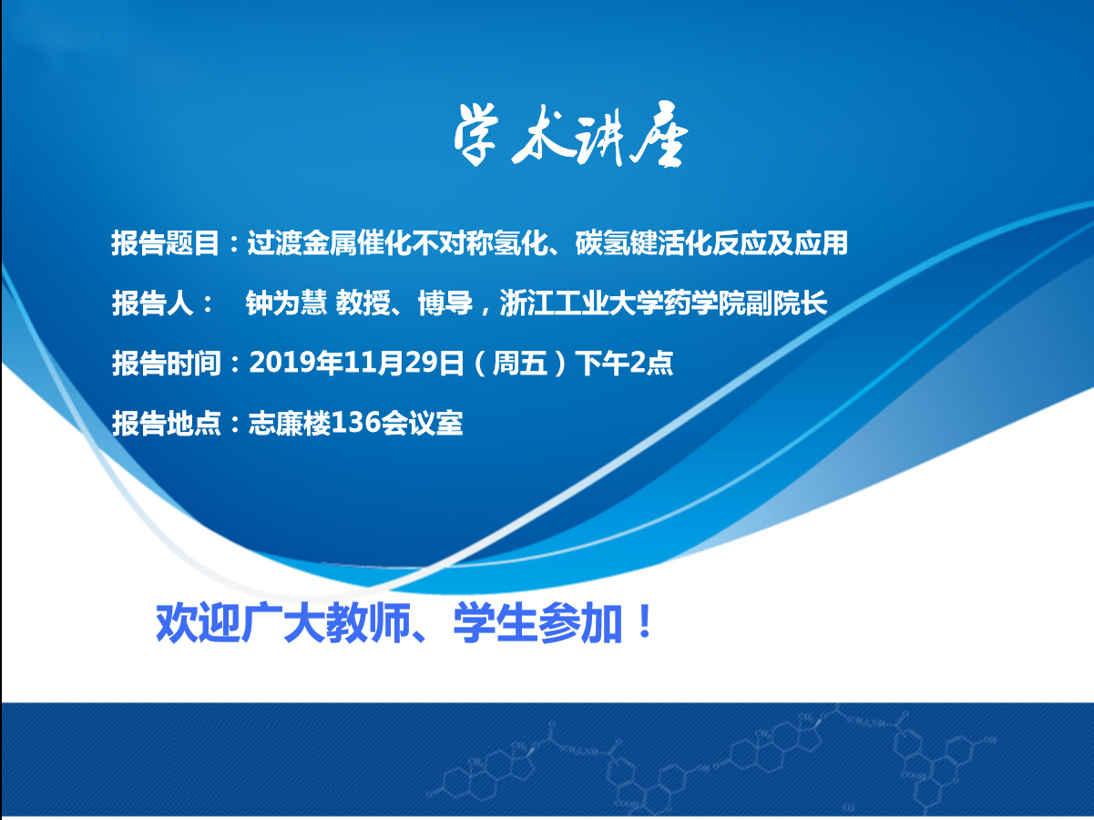 学术讲座:过渡金属催化不对称氢化、碳氢键活化反应及应用