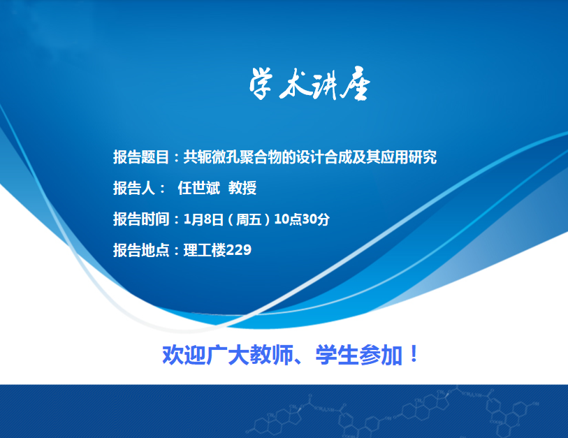 【学术报告】共轭微孔聚合物的设计合成及其应用研究