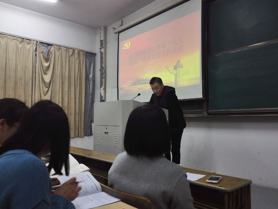 3月28日晚七点,研究生党支部在河西理工楼开展了学习宣传贯彻绍兴市第八次党代会精神的学习会。会议主要分为三个部分:一是学习夏宝龙、车俊同志在剿灭劣V类水工作会议上的讲话;二是学习彭佳学同志在全市“八大战役”动员大会上的讲话;三是学习彭佳学同志在市第八次党代会上的报告。会议由黄琎同志主持召开。