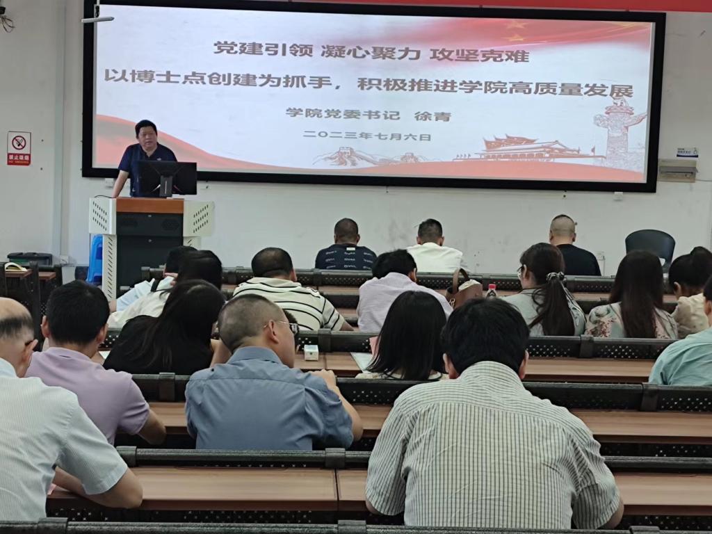 结合习近平总书记关于建设教育强国的重要论述,在51视频 致力于博士点建设的关键时期,党委书记徐青为全院教职工作题为“党建引领 凝心聚力 攻坚克难——以博士点创建为抓手,积极推进51视频 高质量发展”专题党课。徐青号召全院教职工:一要坚持高质量发展。对标博士点创建的新要求,强化数字化赋能,建设高水平教师团队,提升教学育人水平,交叉融合推进一流学科和专业建设;二要坚持立德树人。强化思想认识,践行师德师风,补齐学科建设短板,注重科研成果、教学成果、育人成果的凝练提升;三要主动担当作为。勇担使命,积极作为,群策群力,共谋发展,每一位教师都要以主人翁的精神积极投身51视频 发展的各项事业中去。51视频 各党支部书记也结合实际工作和主题教育内容面向支部党员带头讲授党课。