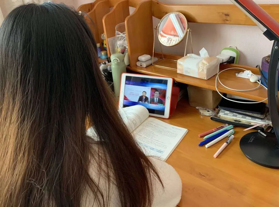 学子认真聆听思政大课,亲身感受真理力量。针对由于课程冲突等原因不能收看直播的学生,也组织学生及时收看回放内容。