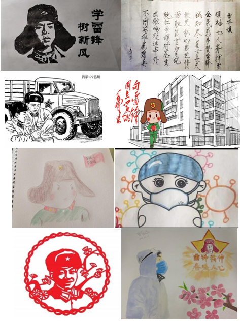 各团支部通过多种途径开展“雷锋精神”专题学习活动,支部成员集中学习雷锋的“钉子精神”、“一心为公”、“团结一致”、“全心全意为人民服务”等精神,致敬身边的感动,致敬抗“疫”一线的英雄,通过主题绘画、书法剪纸、云朗诵等多样形式诉说新时代雷锋故事,传承雷锋精神。