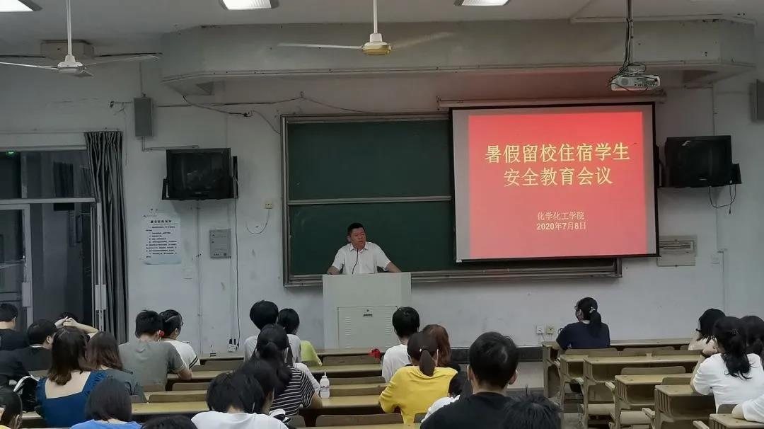2020年暑假留校住宿学生安全教育会议在志廉楼156教室顺利召开。学院党委副书记徐青老师、学生科科长章江燕老师、辅导员韩超峰老师以及全体留宿本科生参加,会议由韩超峰老师主持。