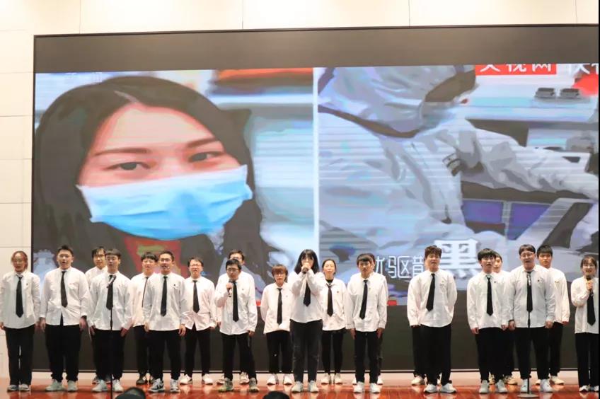 随后,校主持人队集体朗诵了以抗击疫情为主题的诗歌《相信》,以及来自艺术学院的林哲同学和傅瑜佳同学为我们带来了女生合唱《共和国之恋》。