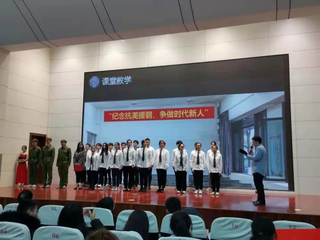 应用化学181班团支部,以“纪念抗美援朝,争做时代新人”为主题,通过讲述老兵的战争故事与歌舞表演。体现了抗美援朝战争中志愿军的英勇无畏的精神。