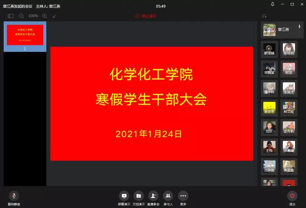 在企业微信召开全体学生干部大会,再次重申学生干部要深刻认识疫情防控工作的重要性和紧迫性,配合学院做实做好疫情防控工作。学院党委副书记徐青书记对全体学生提出了三点希望:一是要提高政治站位,严格遵守相关要求,加强家校联系,筑牢疫情防控安全线;二是希望合理安排假期时间,保证睡眠充足,坚持运动,加强学习,为下学期的学习做好准备;三是希望科学规划,回顾总结成绩和不足,确定好自己未来的发展方向。