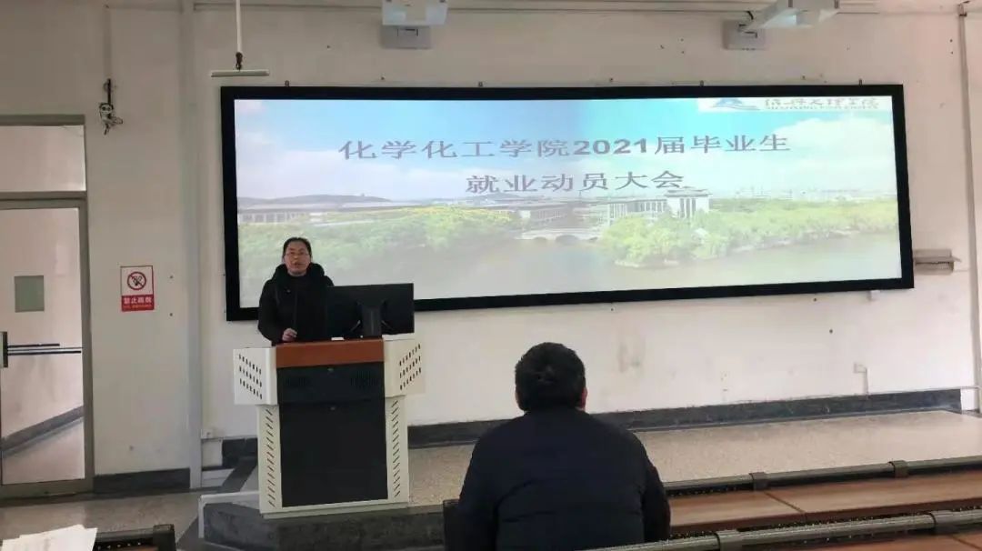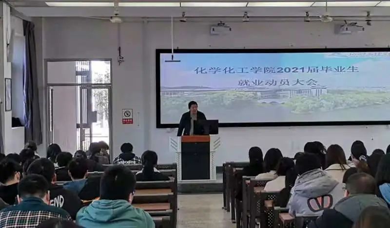 2021届毕业生就业动员大会。学院副院长陶菲菲教授、党委副书记徐青老师、学生科科长章江燕老师以及全体2021届毕业生参加此次动员会。
