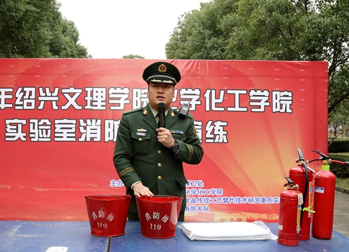演练结束后,越城区消防大队副大队长焦志高对此次演练进行了点评。他对我校应对突发灾害事故处置的应急响应速度给予了肯定,同时提醒广大师生员工,要时刻紧绷消防安全责任这根弦,平时要清楚了解实验室危化物品的放置位置和应急处置办法,只有这样才能将事故危害降到最低限度,在意外情况发生时及时处置。