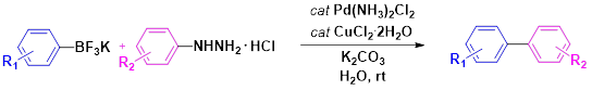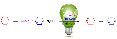 联芳基和芳炔基结构单元是各类复杂分子化合物的基础单元而且也是许多药效基团、天然产物、农用化学品等领域不可或缺的结构部分,制备此类化合物一直是人们关注的热点。传统的联芳基和芳炔基化合物合成方法是通过钯或镍催化亲电试剂(Ar-X, X =Cl,Br,I,OTf 等)与亲核试剂(Ar-M/ArC≡CH, M=B, Si, Sn等)两部分交叉偶联方式构建的,反应中往往也会引起许多副反应的发生,底物官能团受到一定的限制,因此开发其他亲电试剂和亲核试剂的绿色催化体系来合成联芳烃和芳炔烃化合物具有非常重要的意义。近期,51视频
