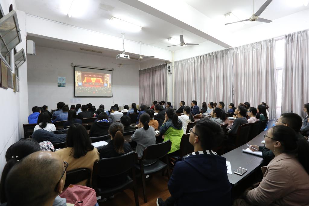 分党委组织党委委员、纪委委员、师生党员代表和学生干部代表等八十余人在志廉楼136会议室集体收看党的十九大开幕会盛况。