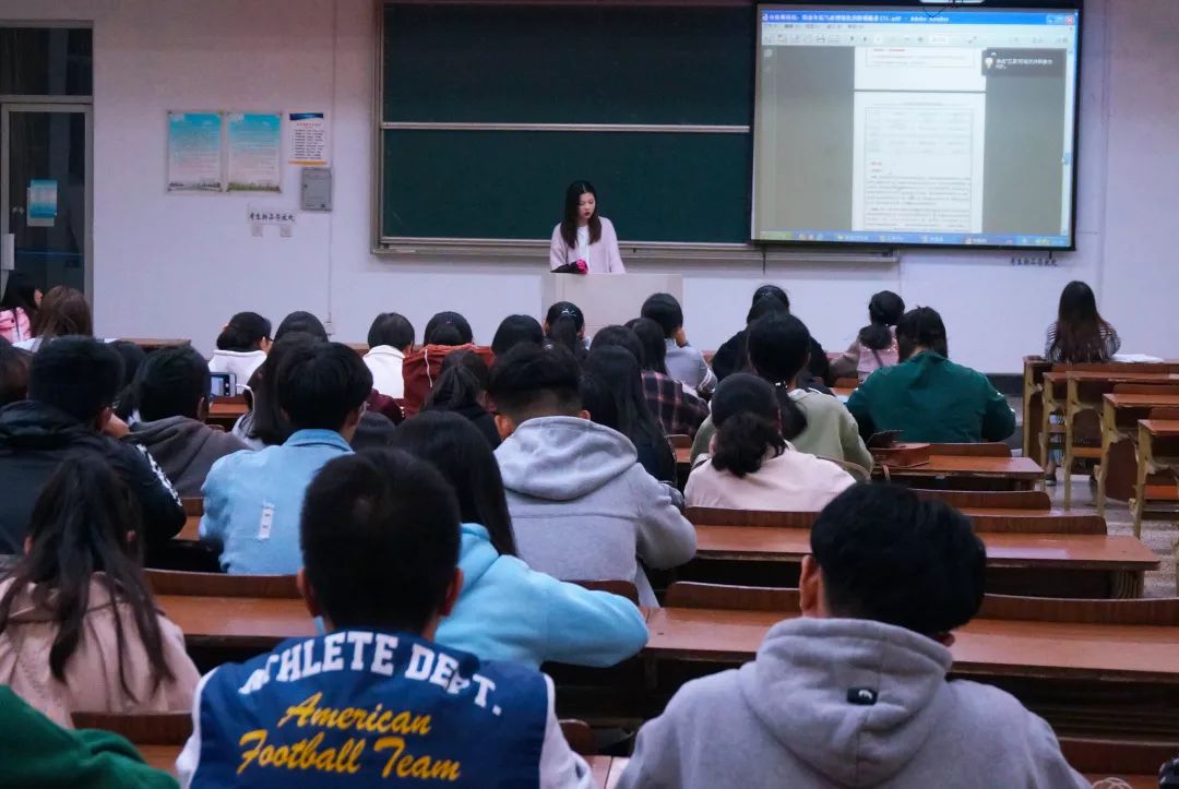 整个大赛中,主要包括初赛报名、学校初赛、省级复赛、全国决赛四个阶段。同时,在比赛过程中项目负责人、财务管理、美工这三个身份较为重要。然后她分享了自己团队比赛时的参赛作品,向大一新生详细介绍了作品内容、创作历程及创作方法.