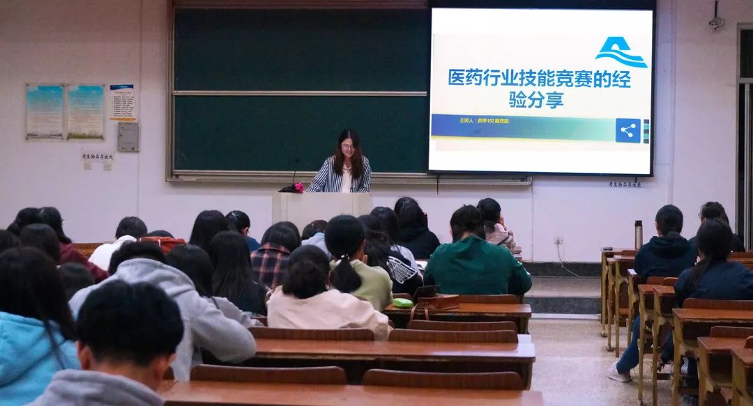 最后,药学152班级的施亚茹向我们分享了医药行业技能竞赛经验。同样,她也向我们展示了她在竞赛过程中的参赛ppt,并就比赛过程中可能遇到的问题给我们提出了解决办法。