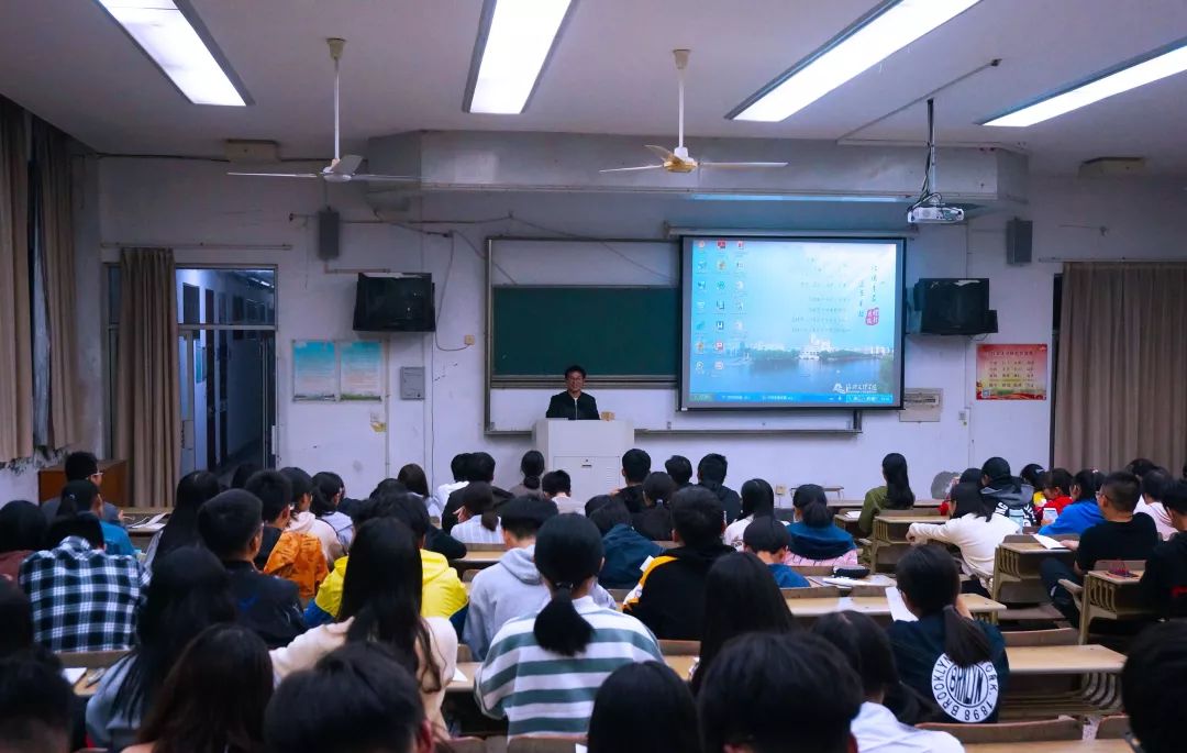 首先,韩老师首先介绍了学习学生手册的重要性,并详细解读《学生手册》中的各项条例,着重强调了学生手册中关于转专业、学业预警、学生违纪处分、创新创业和宿舍管理等相关条例。