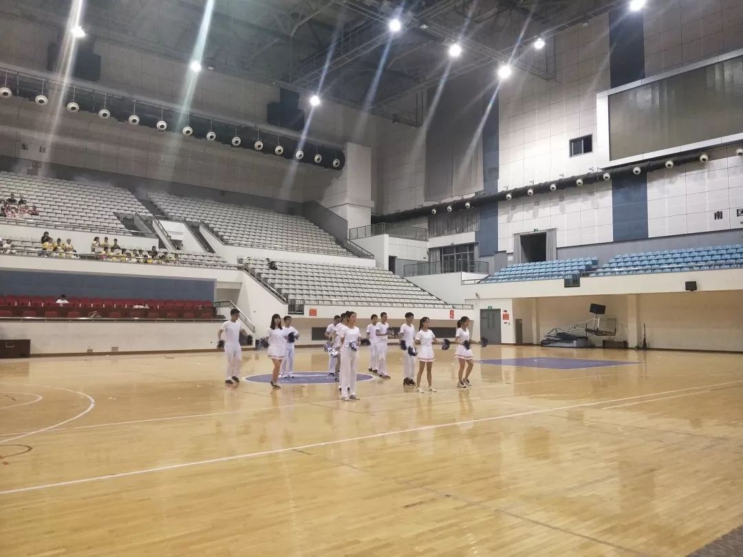 由于报名较迟,参赛选手面临着训练时间短,强度大等现实问题,每个人在积极配合的同时又有着极大的心理压力。通过五天的高强度训练,最终确定了参赛的十二名队员。正式比赛前,为了加强动作的整齐度和熟练度,成员们争分夺秒,积极地在体育馆副馆进行了一次又一次的练习,各成员之间还通过交流,互相帮助巩固记忆,展现了良好、向上的迎赛氛围。
