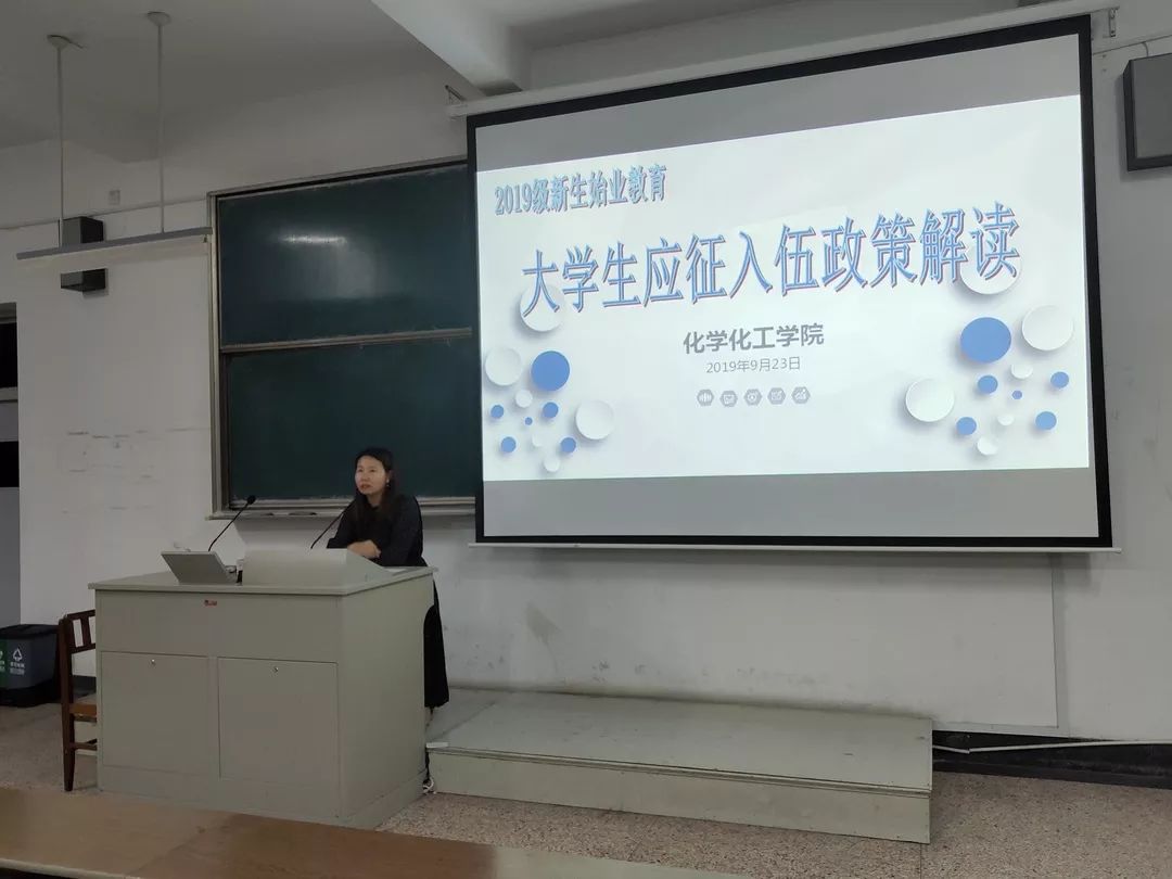 在河东美术馆211教室举办了新生始业教育讲座之大学生应征入伍政策解读。旨在鼓励学生积极响应国家政策,参军入伍,为国家做贡献。
